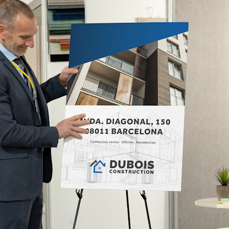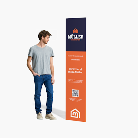 Echa un vistazo a las opciones que te ofrecemos para encontrar una lona que encaje con tu espacio. Las lonas estándar funcionan muy bien como fondo; las lonas microperforadas son óptimas para lugares ventosos; y las lonas textiles aportan elegancia a las presentaciones en espacios interiores. Escoge un tamaño entre A4 hasta 2,5 x 1 m que quede a la perfección en tu espacio. Utiliza nuestras plantillas gratuitas o sube tu propio diseño, y si necesitas que te ayudemos, nuestro equipo te puede orientar para que des con los materiales y tamaños idóneos para tu stand.