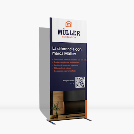 - Destaca con fondos reutilizables y roll-ups de sobremesa