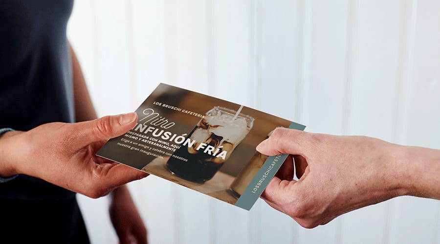 Tanto si es un descuento para su próxima compra o un cupón para un obsequio gratuito, incluir un detalle promocional en tus postales te ayudará a animar a tus clientes a que vuelvan. Además, al margen de los descuentos habituales, puedes ser creativo y crear postales promocionales para felicitar la Navidad o el cumpleaños a tus clientes: las tarjetas personalizadas funcionan muy bien para estimular la fidelidad.