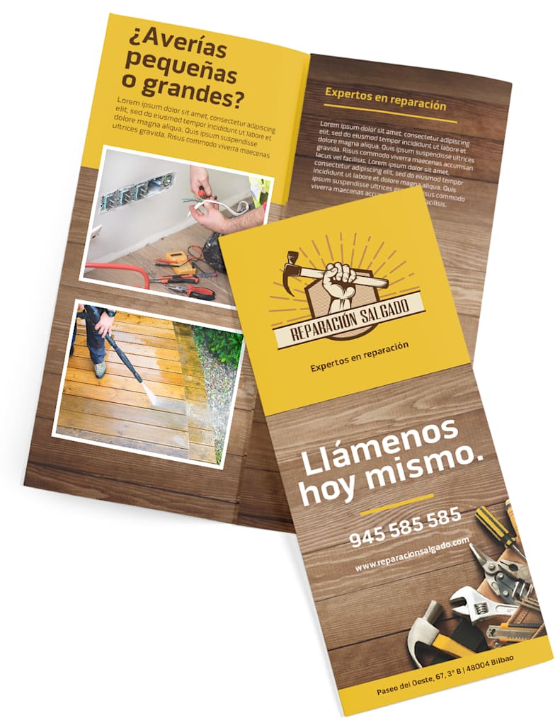 Piensa en la información que quieres comunicar y en el tipo de soporte más adecuado. ¿Eres pintor y quieres dejar a los clientes información detallada sobre tus precios y servicios? Elige un artículo como un folleto, que te dará todo el espacio que necesitas para imprimir esa información.