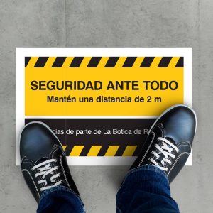 Piensa en cómo tienes organizado tu local y encuentra maneras de reorganizar tus productos y mobiliario para ganar sitio. Puedes retirar los muebles que tengan una función más decorativa y dejar únicamente las estanterías y escaparates que utilizas para mostrar tus productos a los clientes. Una vez hayas decidido cómo reorganizar el espacio, puedes delimitar el espacio y dar indicaciones con vinilos para suelos y ayudar a que tus clientes mantengan la distancia de seguridad. Puedes usarlos para crear áreas distintas de espera, para marcar dónde pueden hacer cola los clientes o simplemente usar flechas para crear un circuito por tu local. Lo esencial es entender que la experiencia de compra va a cambiar para los clientes y es necesario ponérselo fácil y que se sientan seguros.