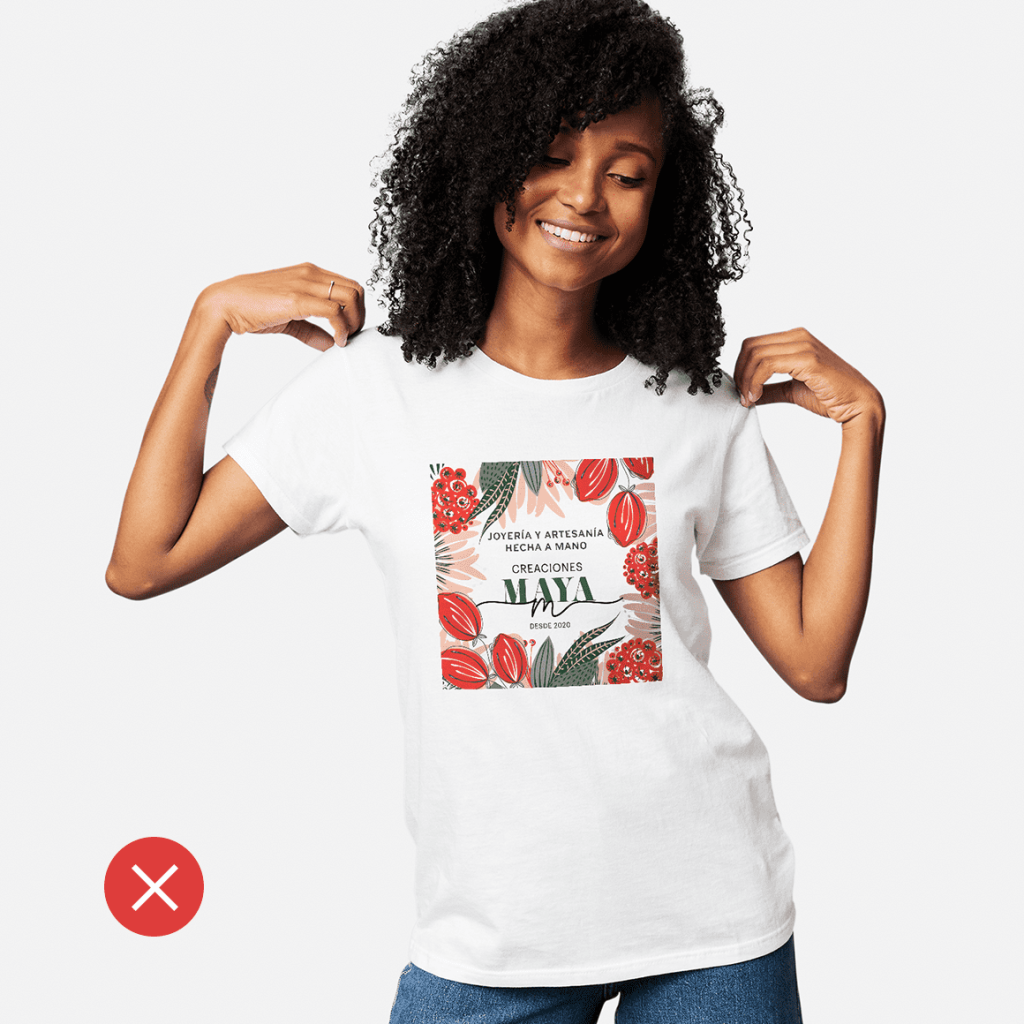 No obstante, no sobrecargues el diseño de la camiseta. Si hay demasiados elementos, distraerán la atención y el mensaje no quedará claro. Las personas que vean la camiseta tienen que captar el mensaje enseguida, no verse obligadas a intentar descifrarlo.