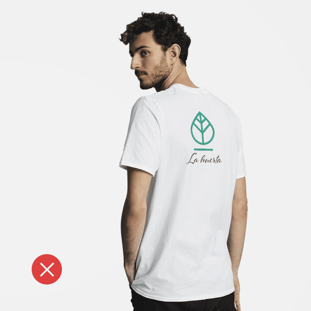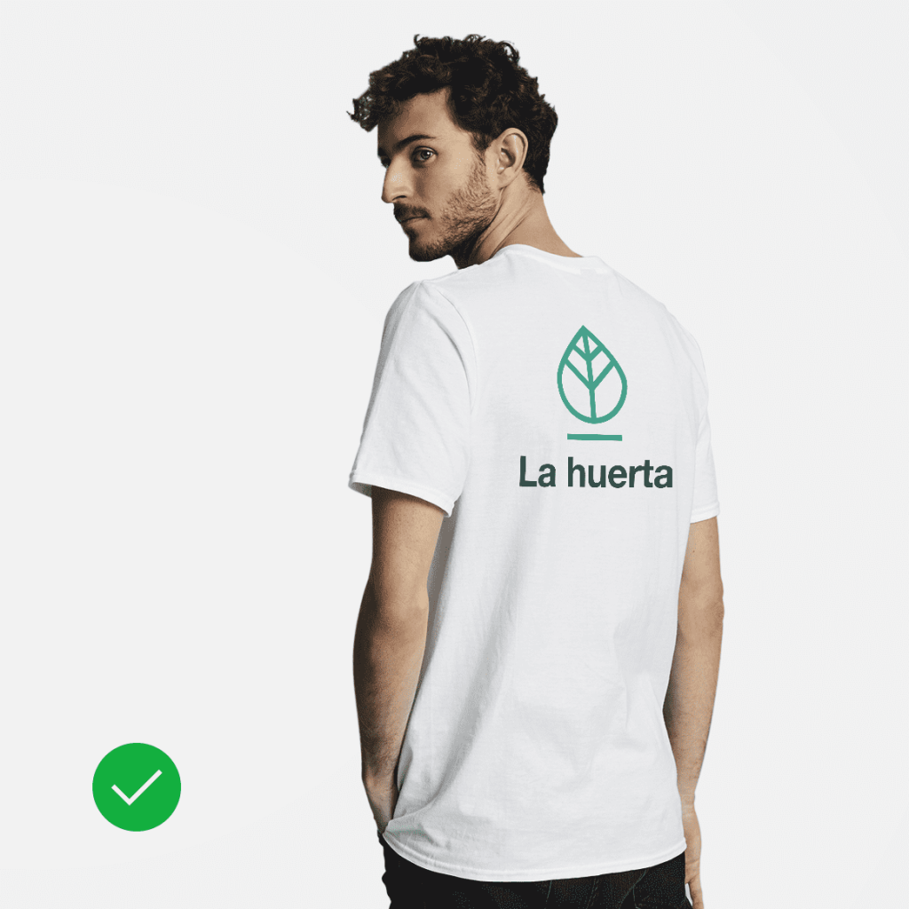 ¿Vas a diseñar camisetas para tu negocio? Aunque son artículos estupendos para resaltar tu logotipo, Tristan aconseja no ponerlo en la parte delantera sin más. «Juega un poco con tu marca visual y comunica tu historia. Las mejores camisetas hechas por empresas parecen obras de arte, en lugar de un artículo creado simplemente para dar visibilidad a sus marcas». Por lo tanto, puedes incluir el logotipo en el diseño general de la camiseta o decantarte por una opción más sutil y colocarlo a la izquierda del pecho o a lo ancho de la espalda.