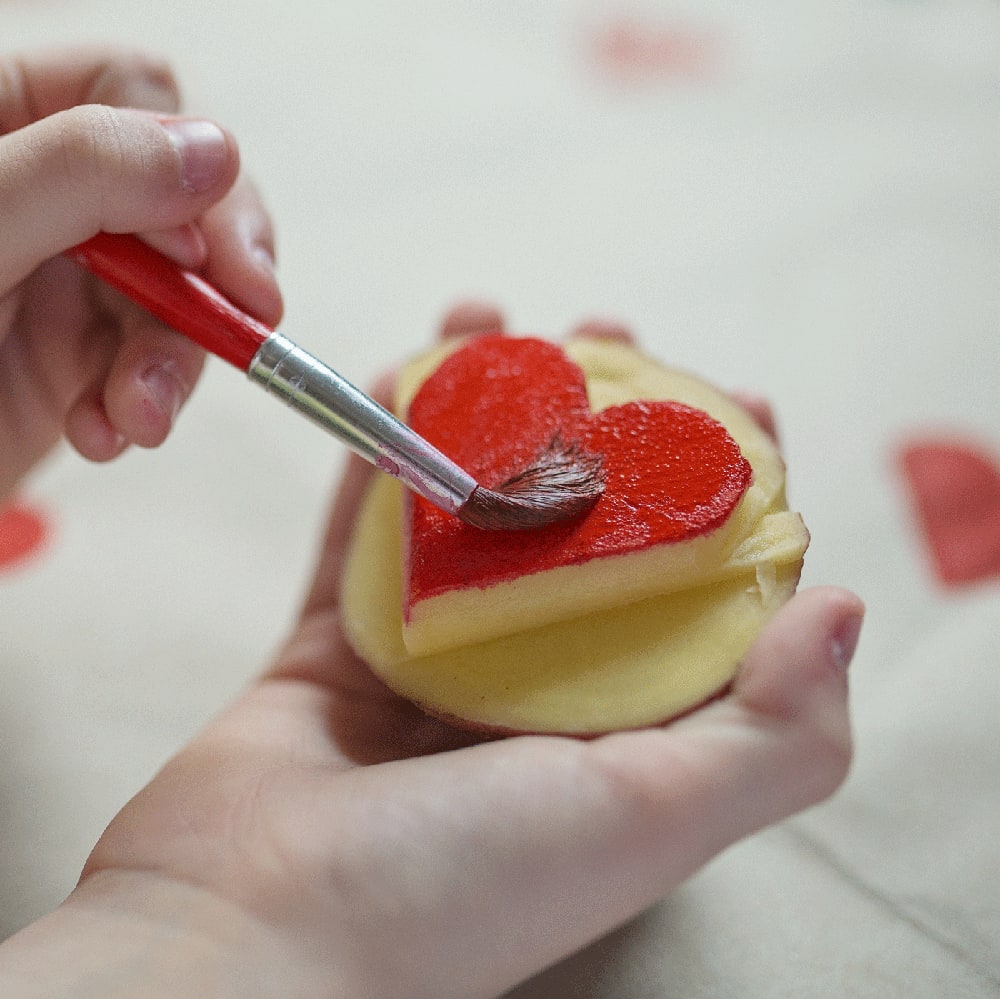 Este método es genial para personalizar tu camiseta con ayuda de los más pequeños. Corta por la mitad una patata, dibuja alguna forma sencilla como una estrella o un círculo sobre ella. Excava con un cúter dando forma a la figura que deberá tener un relieve de 4 centímetros. Mójala en tinta o pintura para camisetas y estampa sobre ellas.