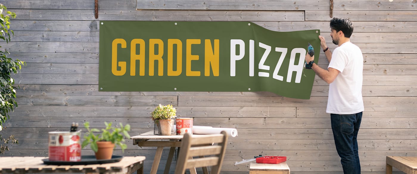 - Promociona nuevos servicios (como opciones de entrega o programas de recompensas) con un póster o una lona para interiores.