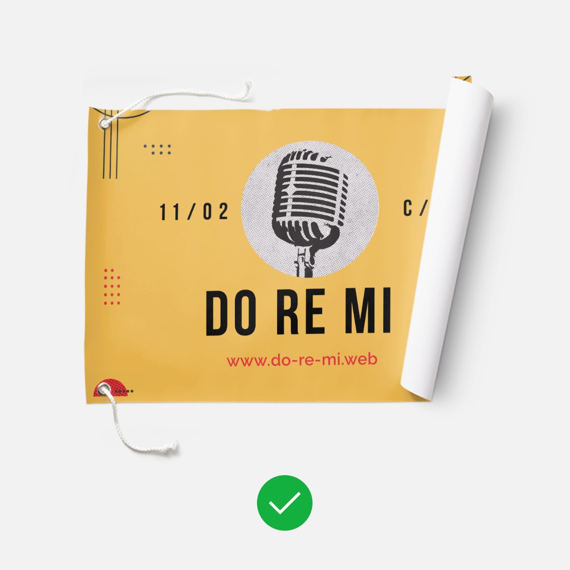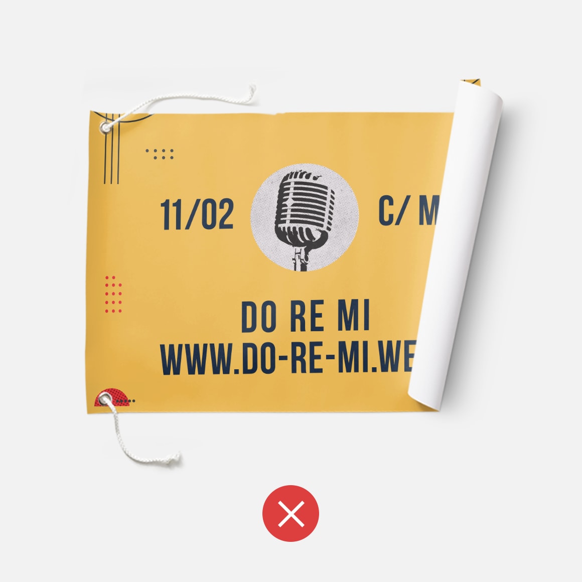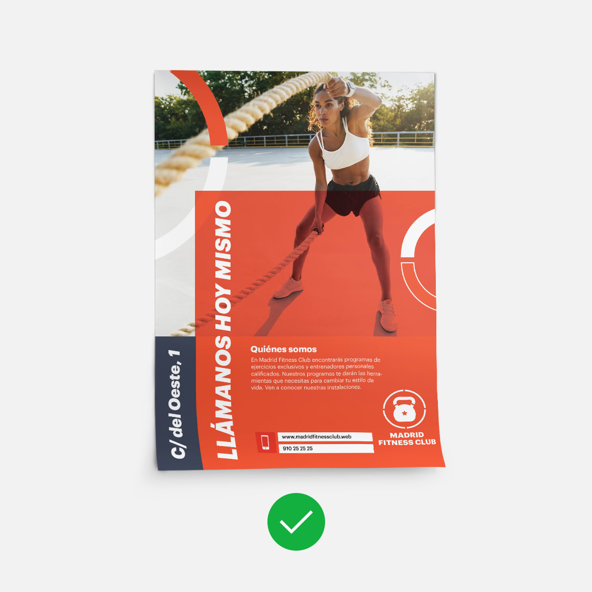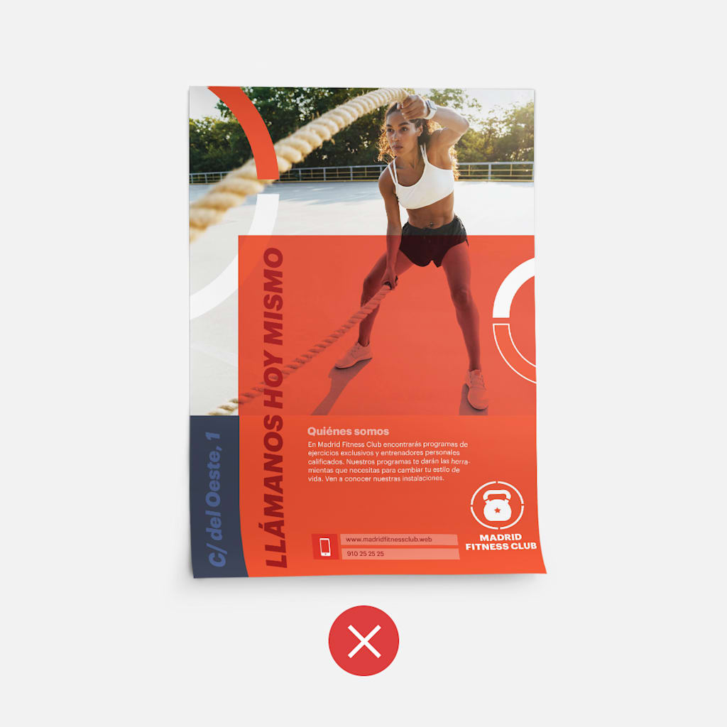 También puedes probar con distintos elementos para aumentar el contraste y dirigir la atención hacia partes concretas del cartel. Por ejemplo, si vas a diseñar una lona para publicitar una oferta, podrías optar por un fondo oscuro y un texto claro, y añadir un cuadrado a la lona con un fondo claro y un texto oscuro para dirigir la atención hacia una parte concreta del mensaje (como un descuento del 50 %).