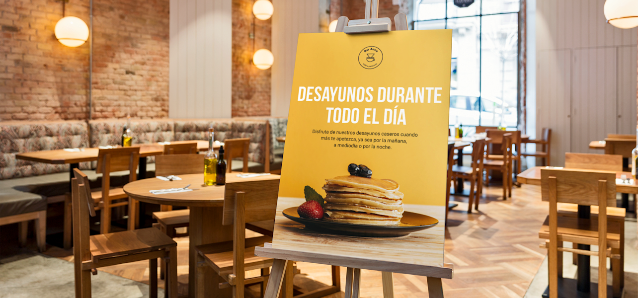- Utiliza la cartelería para fortalecer tu imagen de marca. Las lonas, los carteles y los pósteres ofrecen una estupenda oportunidad de consolidar tu marca entre los clientes y deberías aprovecharla. «El diseño del cartel debe ir a juego con los demás elementos de la marca, como el logotipo, las fuentes, los colores e incluso el tono de voz», aconseja Tristan. «Aunque es importante que destaque, no deja de ser una extensión de la marca. Esta coherencia garantiza el reconocimiento de tu negocio e infunde una sensación de fiabilidad y de confianza entre el público».