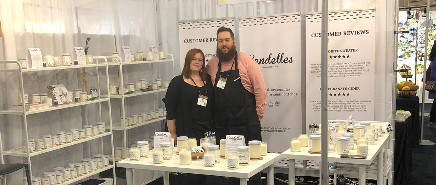 Para contar cómo es la primera participación en una feria comercial, entrevistamos a una representante de Candelles, una pequeña empresa a la que Vistaprint concedió 10.000 dólares durante Small Business Week 2017 para que cumpliera su sueño de participar en su primera feria comercial. Candelles es una empresa que elabora velas de soja ecológicas, ubicada en las montañas del noreste de Pensilvania. Su lema es que la vida tiene que ser sencilla, pero llena de diversión y belleza, y que sus velas iluminan todos esos momentos.