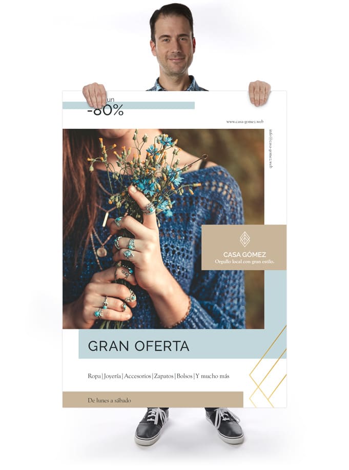 Hay veces que lo importante es captar la atención a lo grande. Otras, quieres compartir información y que tus clientes la lean detenidamente. Y en muchas ocasiones, quieres las dos cosas. Por eso, los pósteres son el producto perfecto para conseguir este equilibrio: por un lado, tienen un componente de diseño muy potente que atrae las miradas con colores, imágenes y formas; por otro lado, dispones de cierto espacio para transmitir fechas, eventos y otros datos relevantes para ti.