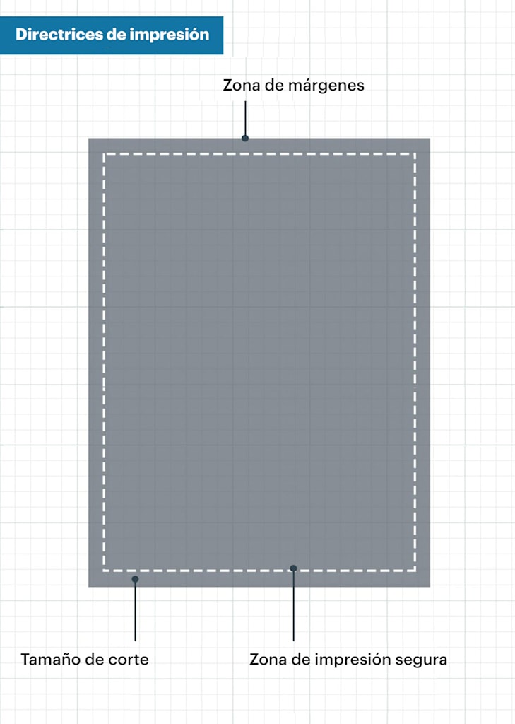Como el nombre indica, se trata del lugar por donde cortamos los pósteres. Hacemos todo lo posible para que los pósteres queden centrados y sean uniformes, pero asegúrate de comprobar la zona de impresión segura al finalizar el diseño.