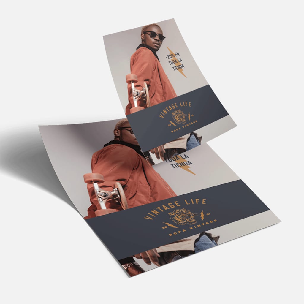 Un flyer A4 es el que más se parece a una hoja de papel estándar, así que si buscas algo clásico y reconocible al instante, este podría ser el tamaño más adecuado. Este formato de flyer también permite ocupar espacio con más información o un diseño ampliado.