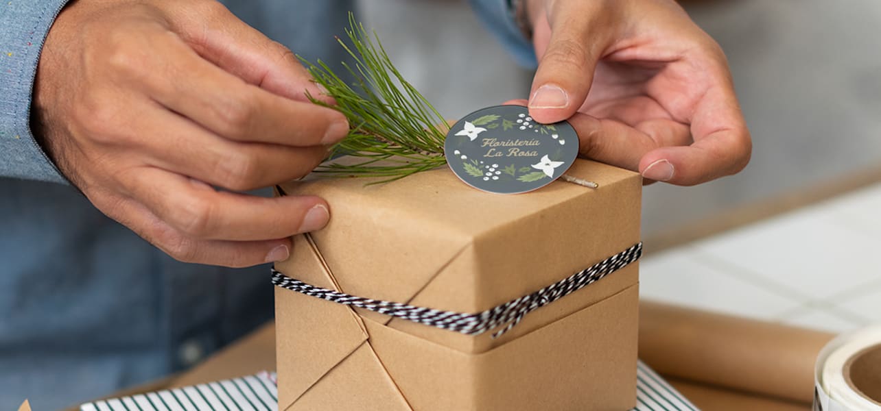 Un packaging estupendo puede marcar la diferencia, sobre todo teniendo en cuenta que puede acabar formando parte de un vídeo en Instagram en el que se desempaquetan tus productos. Pon tu logotipo o un diseño exclusivo en las etiquetas adhesivas y asegúrate de incluirlas en todos los envíos navideños. Además, las hojas de etiquetas adhesivas pueden servirte para sustituir a la cinta adhesiva al empaquetar productos con papel de seda. Añade un toque original a cada pedido con una o dos pegatinas individuales. Así, conseguirás que tus clientes den a conocer tu negocio.