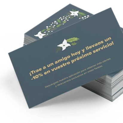 Las tarjetas de visita tienen muchos más usos de los que te imaginas. Puedes utilizar las tarjetas de visita como herramientas de recomendación. En los pedidos, incluye una tarjeta de visita con un incentivo especial para recomendar tu negocio a un amigo. Así generarás marketing boca a boca. Tanto si les ofreces envío gratis como un descuento en su próxima compra, contribuirás a consolidar la relación con tus clientes, además de tentarlos para que vuelvan a tu negocio. No olvides darles las gracias por su fidelidad.