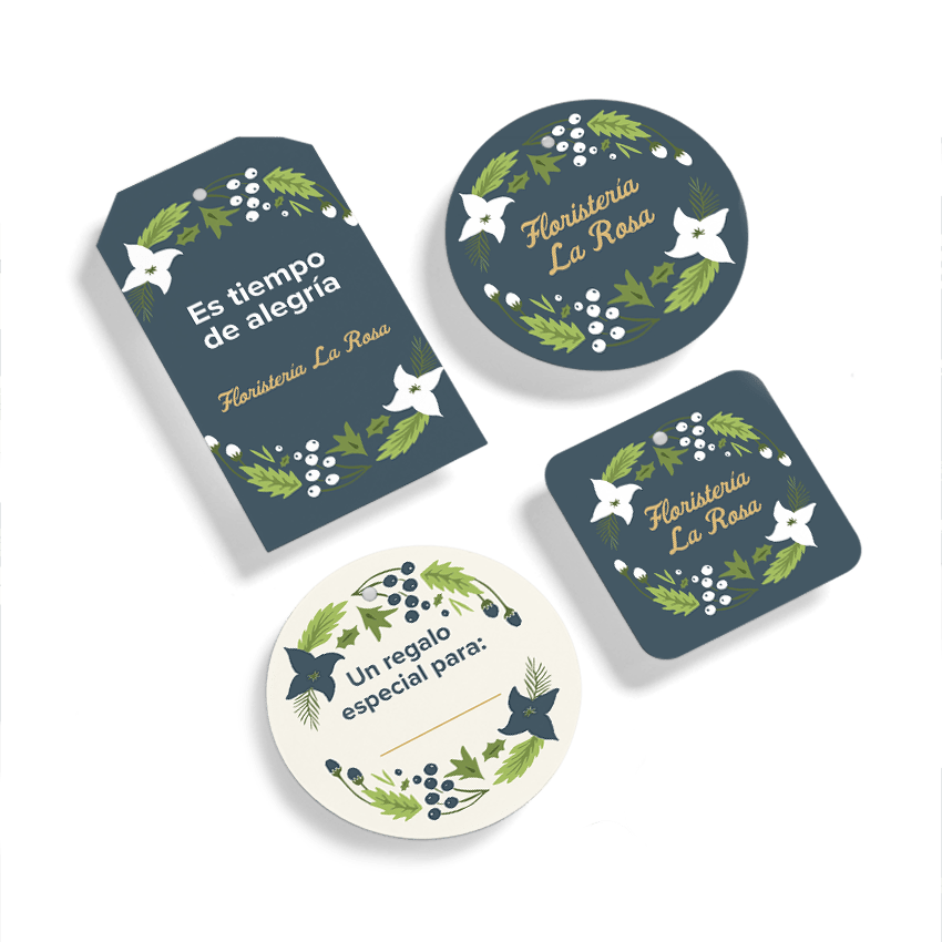Las etiquetas personalizadas son una herramienta sencilla para añadir un toque navideño con tu imagen de marca a casi cualquier artículo, desde sudaderas hasta tarros de mermelada. Pide un lote especial para las fiestas navideñas (quizá algo con un poco de brillo) y anima a tus clientes a utilizar el reverso como etiqueta para regalo «De/Para».