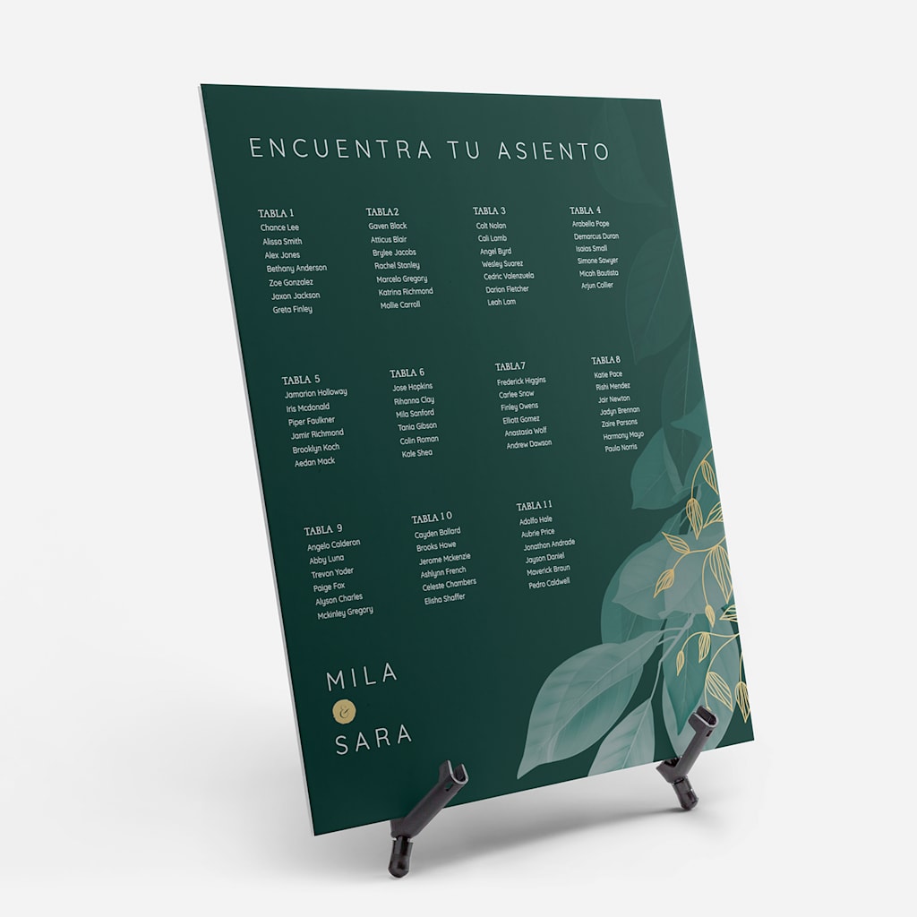 Si queréis reducir gastos en la boda, pensad en cosas que podáis crear por vuestra cuenta… o con una ayudita. Lo más probable es que necesitéis la distribución de las mesas, marcasitios, programas y cartas del banquete. Empezad con una plantilla o subid vuestro diseño para crear una decoración personalizada. Los carteles de bienvenida son otra herramienta económica para marcar la pauta de vuestro día señalado, tanto si optáis por un espejo pintado a mano como si preferís un cartel de metacrilato impreso. ¿Se os ha ocurrido un hashtag exclusivo para la boda? Incluidlo en los carteles y pósteres para que los invitados lo utilicen al compartir fotos en redes sociales. Otras cosas que podéis diseñar por vuestra cuenta antes del gran día son bolsas de bienvenida, recuerdos de boda o números de mesa.