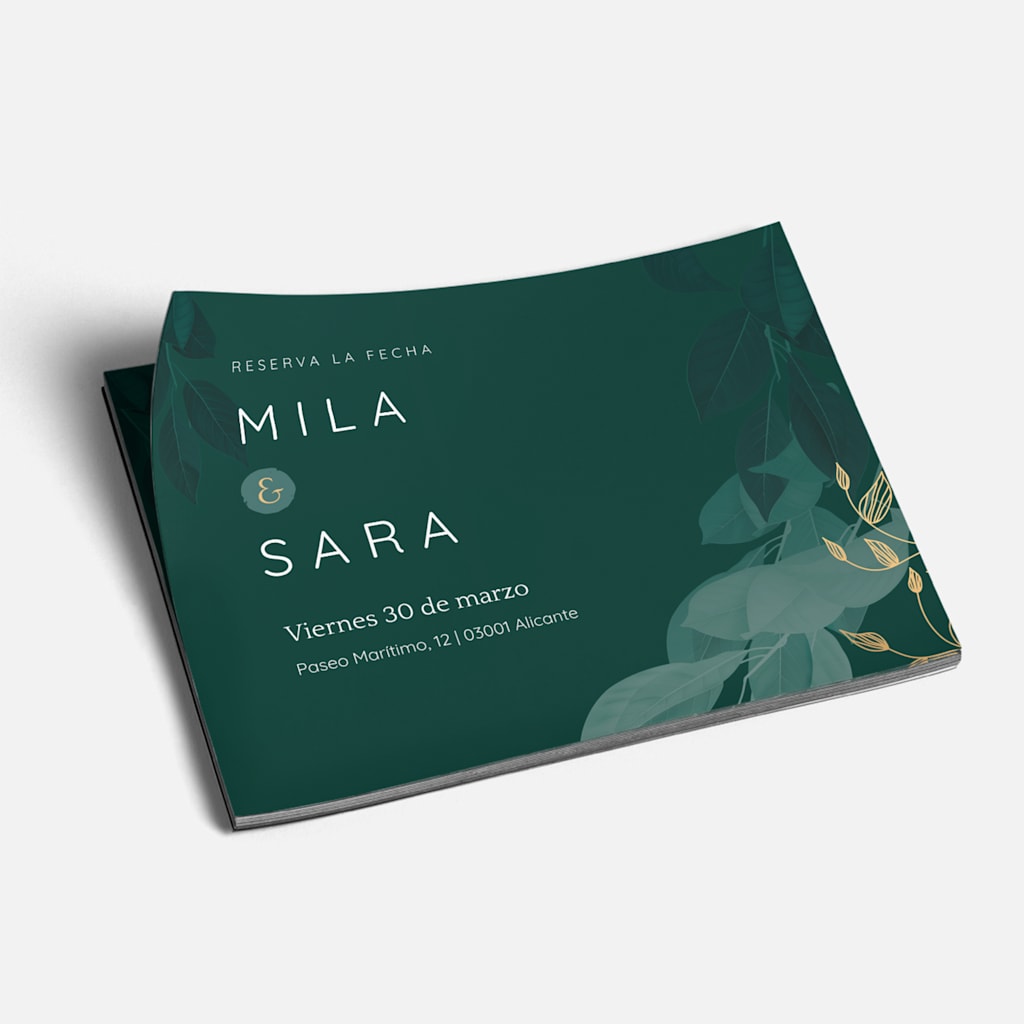 Por norma general, los recordatorios de fecha (Save the Date) se envían entre seis y nueve meses antes del día de la boda. Si vais a celebrar la boda en otra ciudad, si hay muchos invitados de fuera o si tenéis previsto celebrarla un fin de semana festivo, lo recomendable es enviarlos con nueve meses de antelación, para que todo el mundo tenga tiempo de prepararse. Si vais a celebrar la boda en vuestra ciudad, con la mayoría de los invitados de la zona, no es necesario avisarles con tanta antelación. Elegid un tema y colores para las tarjetas Save the Date que reflejen el collage visual de la boda y no olvidéis incluir la fecha, el lugar y la página web de la boda. ¿Queréis enviar recordatorios de fecha inolvidables? Imprimidlos en un imán.