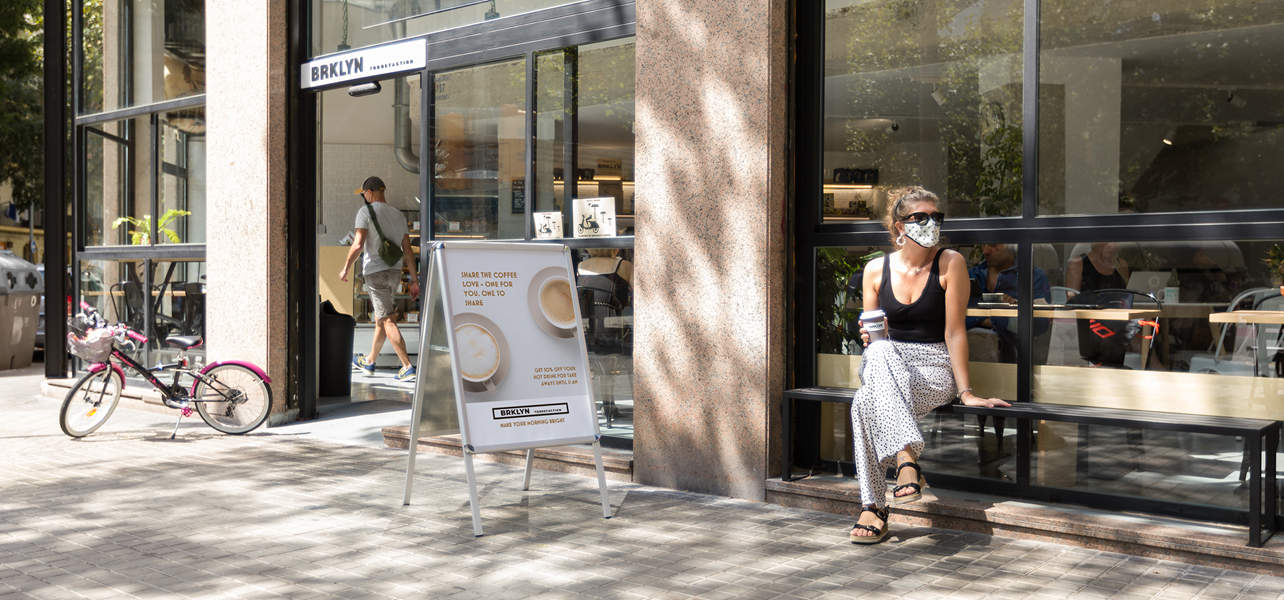 Además de publicar tu nueva oferta de productos y servicios en las redes sociales, utiliza un cartel de toda la vida para dar a conocer las novedades. Cuelga una lona de vinilo en la ventana de la fachada de tu restaurante para promocionar opciones de entrega ampliadas, ofertas promocionales de comida o nuevos platos de la carta. Anunciar novedades es una forma excelente de entusiasmar a tus clientes habituales y captar nuevos clientes, tanto si se trata de la aplicación de nuevas medidas de seguridad como si presentas un nuevo sabor de café.