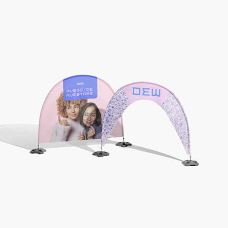 Añade tu logotipo en unas banderas elegantes y de doble cara que podrás colocar en interiores y exteriores.