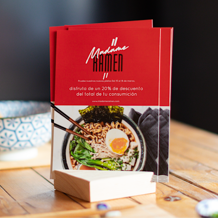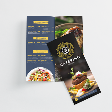 folletos plegados son una hoja más grande doblada para crear varias páginas. Vienen en distintos tamaños, según la composición que prefieras, y se usan para proporcionar una información más detallada sobre un producto, un servicio o un evento. Se pueden usar como catálogos, menús o guías informativas. Las