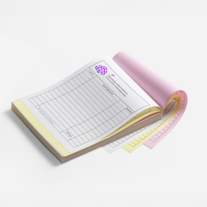 Los talonarios de facturas te ayudan a poner orden en las prisas del día a día. El papel autocopiativo sin carbón (NCR, por sus siglas en inglés) calca lo que apuntes en varias páginas, ayudándote así a que siempre quede constancia de los recibos de pago, pedidos y servicios. Nuestros talonarios de facturas incluyen 50 juegos de 3 hojas: una blanca, una amarilla y una rosa. Crea duplicados y triplicados de tus transacciones en los que se reconozca tu marca.