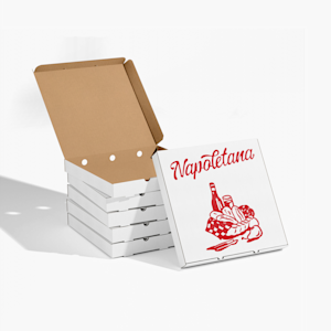 Nuestras nuevas cajas personalizables son perfectas para cualquier pizzería, puesto de comida y servicio de catering que quiera contar con un toque personal. Están fabricadas con resistente cartón corrugado de flauta E y están disponibles en 5 tamaños. Además, están diseñadas para mantener la frescura y la temperatura de tus pizzas al tiempo que evitan la grasa y la humedad. Tanto si acabas de abrir como si tienes un negocio establecido, las cajas de pizza personalizadas son una solución de packaging económica y cuidada.