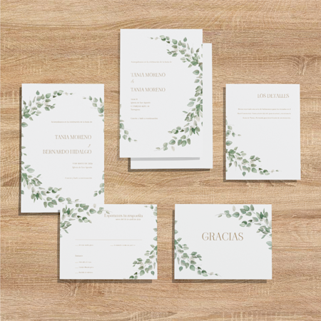 No, eso depende de lo que tú quieras. Aunque es muy común mantener el mismo estilo en los artículos de papelería de boda, no hay ninguna norma estricta que te obligue a ello. Tanto si quieres que todo vaya a juego como si prefieres combinar estilos, podrás crear tu conjunto de papelería fácilmente en nuestro estudio de diseño.