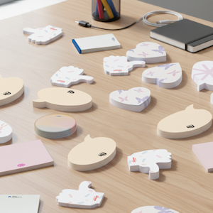 Puedes escoger entre tres tamaños (50 x 72 mm, 72 x 72 mm y 100 x 72 mm) y dos tipos de bloc. El bloc básico presenta la clásica forma cuadrada o rectangular. Y si quieres dar rienda suelta a tu creatividad, te ofrecemos formas troqueladas, como en forma de bocadillo, círculo, corazón y pulgar hacia arriba. La opción de 100 hojas solo está disponible para los blocs básicos.
