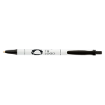 Haz que tu marca forme parte de cada nota con este bolígrafo fiable. Cuenta con un diseño retráctil y tinta negra suave en un barril de plástico clásico.