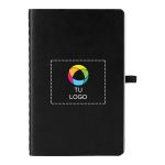 Da a conocer tu marca con una libreta de tapa blanda suave que te permitirá escribir cómodamente y mantenerte organizado gracias a su correa elástica y a la presilla para bolígrafos. Ya sea para tomar notas en una reunión o esbozar conceptos creativos, este cuaderno pautado es el lienzo ideal para todas tus ideas. Es muy fácil de personalizar: solo tienes que añadirle tu logotipo, mensaje o información con nuestro estudio intuitivo. ¿Necesitas ayuda? Nuestros expertos en diseño están aquí para ayudarte a dar vida a tus ideas.
