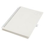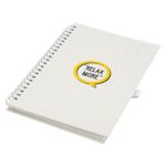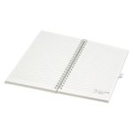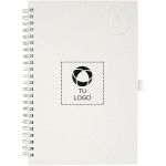 Captura tus ideas en esta libreta de espiral A5 y añade tu marca a cada oficina. Características: 70 hojas rayadas elaboradas a partir de cartones de leche.