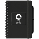 Escribe y organiza tus ideas con esta libreta de espiral fabricada a partir de materiales reciclados. Utilízala durante tus reuniones, para planificarte el día a día o para dar rienda suelta a la creatividad junto con el bolígrafo retráctil que incluye. Es muy fácil de personalizar: solo tienes que añadirle tu logotipo, mensaje o información con nuestro estudio intuitivo. ¿Necesitas ayuda? Nuestros expertos en diseño están aquí para ayudarte a dar vida a tus ideas.