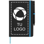 Mantén a tu equipo organizado y en línea con la marca con este elegante cuaderno que cuenta con una cubierta de tacto suave, acentos de color que combinan con el marcapáginas, presilla para bolígrafo y stylus incluido. Utilícelo para reuniones con clientes, conferencias o integración de empleados para causar una impresión duradera mientras mantiene las notas importantes a mano. Es muy fácil de personalizar: solo tienes que añadirle tu logotipo, mensaje o información con nuestro estudio intuitivo. ¿Necesitas ayuda? Nuestros expertos en diseño están aquí para ayudarte a dar vida a tus ideas.