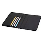 Mantén tus documentos de viaje organizados con este soporte de pasaporte protegido por RFID. Cuenta con bolsillos dedicados y un cierre de banda elástica en poliéster duradero.