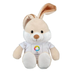 Crea regalos personalizados con este adorable conejo de peluche que lleva una camiseta blanca personalizable. Ideal para añadir mensajes especiales o diseños.