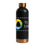 Olvídate de pasar sed y mantén la temperatura de tus bebidas durante horas con esta botella térmica de doble capa con una elegante tapa con detalles en cobre. Tanto si la quieres para poder tomarte un café caliente durante las reuniones de la mañana como si quieres llevar agua fría al gimnasio, esta botella mantiene las bebidas a la temperatura ideal. Es muy fácil de personalizar: solo tienes que añadirle tu logotipo, mensaje o información con nuestro estudio intuitivo. ¿Necesitas ayuda? Nuestros expertos en diseño están aquí para ayudarte a dar vida a tus ideas.