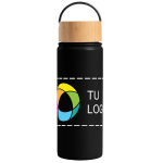 Olvídate de pasar sed con esta botella de doble capa aislante que mantiene las bebidas frías o calientes durante más tiempo. Tanto si estás en la oficina como si vas al gimnasio, esta elegante botella con tapa de bambú y cómoda asa es tu compañera ideal para llevar tus bebidas. Es muy fácil de personalizar: solo tienes que añadirle tu logotipo, mensaje o información con nuestro estudio intuitivo. ¿Necesitas ayuda? Nuestros expertos en diseño están aquí para ayudarte a dar vida a tus ideas.