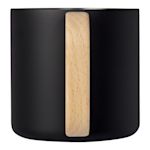 Mantén tus bebidas a la temperatura ideal con esta taza de viaje aislada al vacío. Fabricada en acero inoxidable reciclado con un asa de madera de haya.