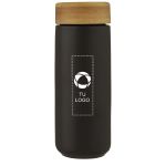 Este vaso de cerámica cuenta con una tapa de bambú que, además de quedar de lo más elegante, resulta práctica, ya que evita que se derrame el líquido. Su estructura de dos capas mantiene las bebidas a la temperatura ideal y minimiza la condensación. Es muy fácil de personalizar: solo tienes que añadirle tu logotipo, mensaje o información con nuestro estudio de diseño intuitivo. ¿Necesitas ayuda? Nuestros expertos en diseño están aquí para ayudarte a dar vida a tus ideas.
