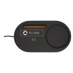 Tiene espacio para materiales de oficina, como bolígrafos, clips o reglas, pero lo que hace del organizador de escritorio con cargador inalámbrico un aliado único es que también sirve de soporte para un altavoz Bluetooth® y un teléfono. El altavoz se coloca en el soporte de caliza y corcho, mientras que el teléfono se mantiene en pie para ofrecerte un mejor ángulo de visión para que no se te pase por alto ninguna notificación o recordatorio. Colócalo en el escritorio, en la mesita de noche o cualquier otra superficie plana cerca de un enchufe, y verás cómo tus clientes se fijarán en tu logotipo cada día. Si buscas una forma sencilla y efectiva de transmitir un mensaje especial, una fotografía o un logotipo, el organizador de escritorio con cargador inalámbrico Klip será tu mejor aliado en tu próximo evento promocional. Añade tu logotipo o diseño a la zona de impresión y repártelo en el próximo congreso.