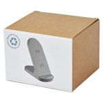 Este soporte de carga alimenta tus aparatos habilitados para Qi rápidamente en modo retrato o paisaje. Hecho de plástico reciclado con bobinas dobles y base antideslizante.