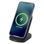 Mantén los dispositivos alimentados durante todo el día con este soporte de carga inalámbrica que ofrece carga rápida y conveniente para tu equipo, clientes o asistentes al evento. Colócalo en escritorios o mesitas de noche para cargar teléfonos en modo retrato o paisaje, compatible con todos los aparatos habilitados para Qi. Es muy fácil de personalizar: solo tienes que añadirle tu logotipo, mensaje o información con nuestro estudio intuitivo. ¿Necesitas ayuda? Nuestros expertos en diseño están aquí para ayudarte a dar vida a tus ideas.