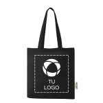 Deja huella en tu próximo evento con esta resistente bolsa de tela que lleva el mensaje de tu marca allá donde vaya. Ideal para conferencias o para ir a la compra, su diseño resistente y sus cómodas asas garantizan que tus artículos promocionales permanezcan visibles durante todo el día. Es muy fácil de personalizar: solo tienes que añadirle tu logotipo, mensaje o información con nuestro estudio intuitivo. ¿Necesitas ayuda? Nuestros expertos en diseño están aquí para ayudarte a dar vida a tus ideas.