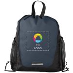 Mantén tus esenciales organizados para entrenamientos, recados y aventuras con esta bolsa con cordón de cierre personalizada. Cuenta con un bolsillo frontal con cremallera y bolsillos laterales de malla.