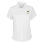 Aporta un toque elegante a tu estilo con la camisa de manga corta clásica de sarga de Russell™ para mujer. Combínala con una falda de tubo para conseguir un aspecto más profesional o con vaqueros para tener una apariencia más desenfadada. Personalízala con tu logotipo y sal a la calle con estilo.