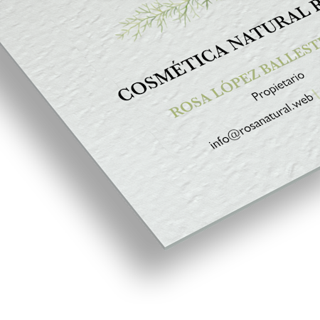 Después de montar tu negocio, querrás que tus tarjetas reflejen tu estilo, personalidad e incluso tus productos. Y, naturalmente, que capten la atención de tus clientes. Nuestros papeles premium presentan aspecto o textura únicos, o una combinación de ambos. Ahora solo falta que le des un toque especial al diseño. Desde papeles naturales y hechos con mucho mimo hasta acabados brillantes y reflectantes, seguro que encuentras algo que te guste e impresione a cualquiera que vea tu tarjeta.